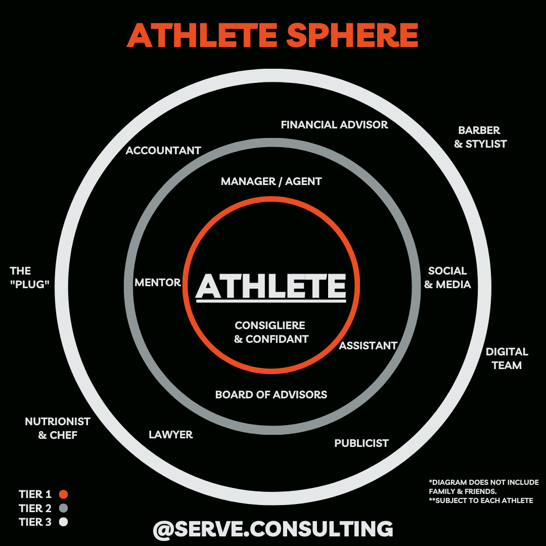 Shown below is this circle, or “Athlete Sphere,” which is composed of four different tiers of people who play different roles in an athletes’ life and business.